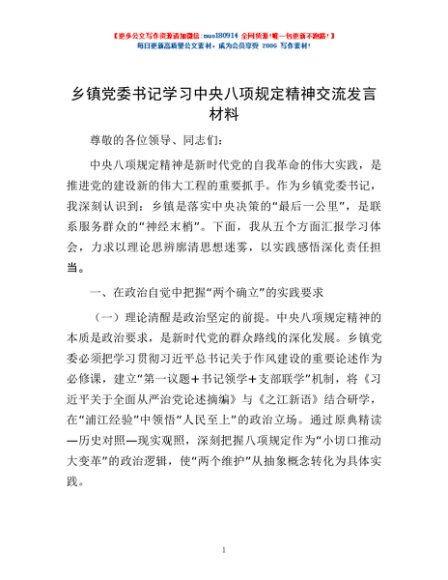 乡镇党委书记学习中央八项规定精神交流发言材料