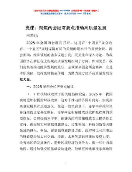 / 党课:聚焦两会经济要点 推动高质量发展