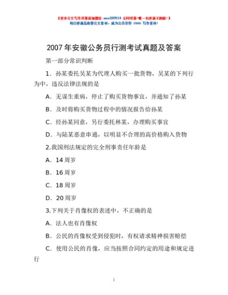 / 2007年安徽公务员行测考试真题及答案