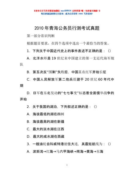 / 2010年青海公务员行测考试真题