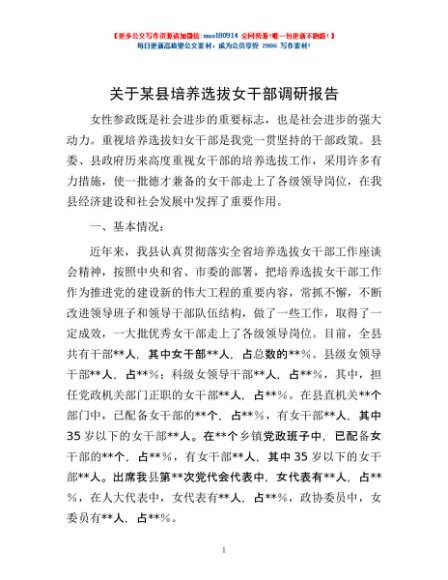/ 关于某县培养选拔女干部调研报告