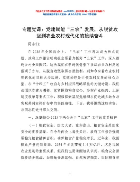 / 专题党课:党建赋能“三农”发展,从脱贫攻坚到农业农村现代化的接续奋斗