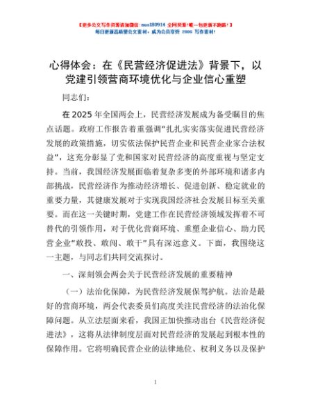 / 心得体会:在《民营经济促进法》背景下,以党建引领营商环境优化与企业信心重塑
