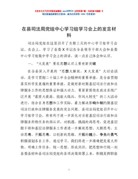 / 在县司法局党组中心学习组学习会上的发言材料