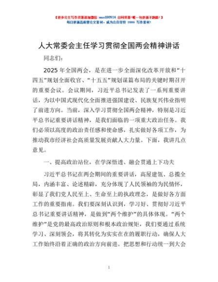 / 人大常委会主任学习贯彻全国两会精神讲话