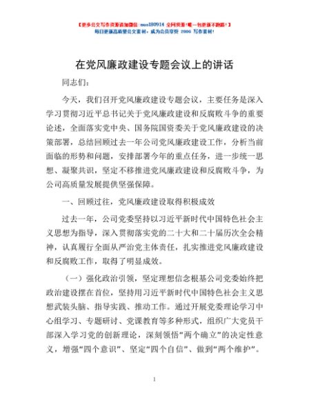 / 在党风廉政建设专题会议上的讲话