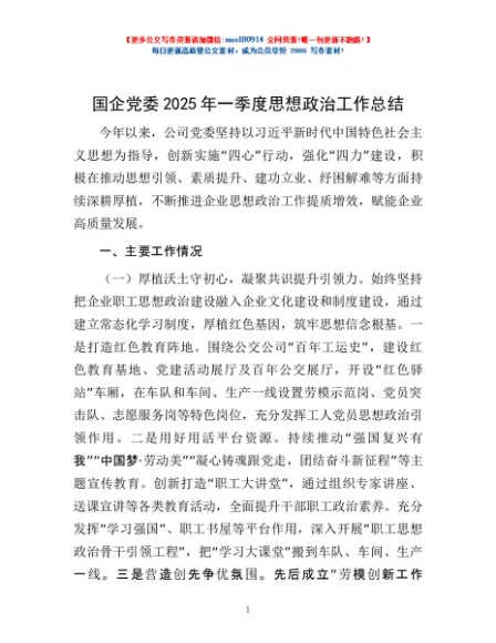 / 国企党委2025年一季度思想政治工作总结
