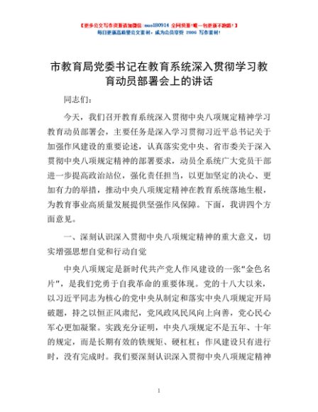 / 市教育局党委书记在教育系统深入贯彻学习教育动员部署会上的讲话
