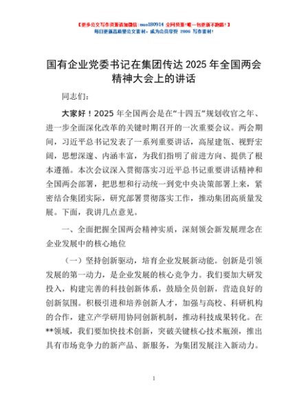 / 国有企业党委书记在集团传达2025年全国两会精神大会上的讲话
