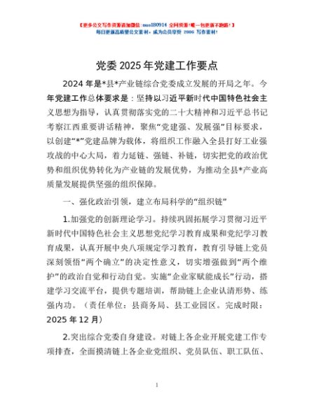 / 党委2025年党建工作要点
