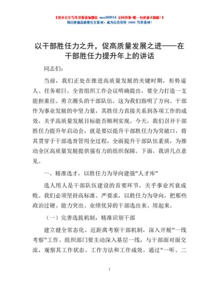 / 以干部胜任力之升,促高质量发展之进——在干部胜任力提升年上的讲话
