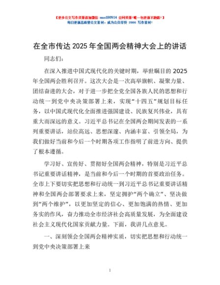 / 在全市传达2025年全国两会精神大会上的讲话