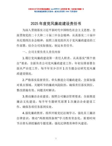/ 2025年度党风廉政建设责任书