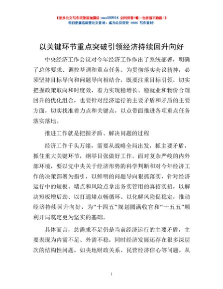 / 以关键环节重点突破 引领经济持续回升向好