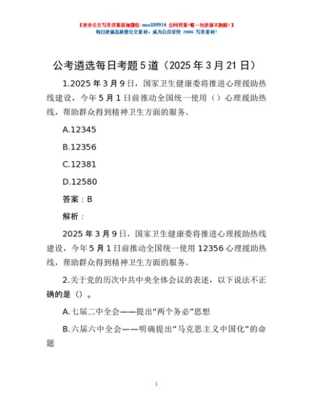 / 公考遴选每日考题5道(2025年3月21日)