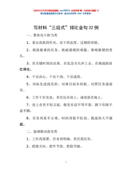 / 写材料“三段式”排比金句32例