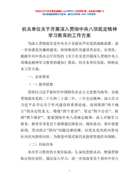 / 机关单位关于开展深入贯彻中央八项规定精神学习教育的工作方案