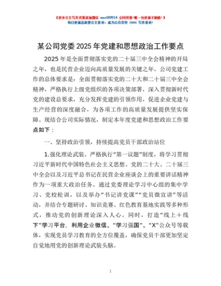 / 某公司党委2025年党建和思想政治工作要点