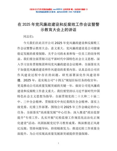 / 在2025年党风廉政建设和反腐败工作会议暨警示教育大会上的讲话