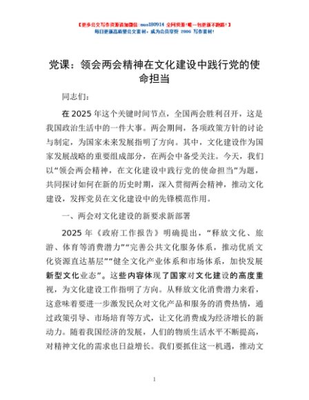 党课:领会两会精神 在文化建设中践行党的使命担当