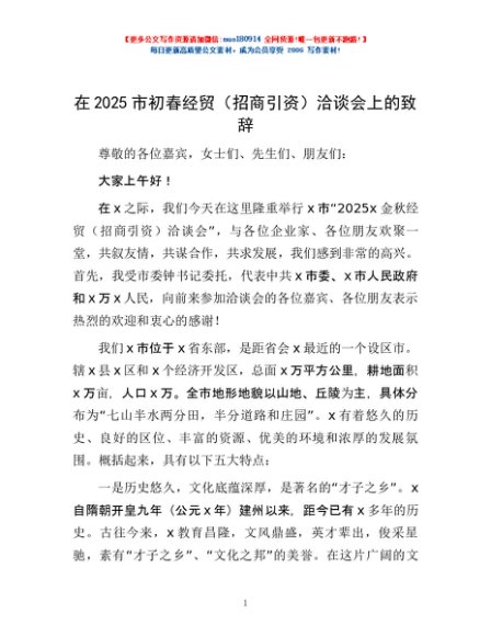 / 在2025市初春经贸(招商引资)洽谈会上的致辞