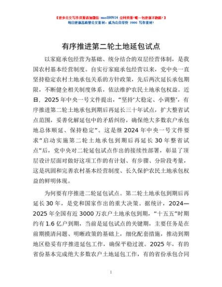 / 有序推进第二轮土地延包试点