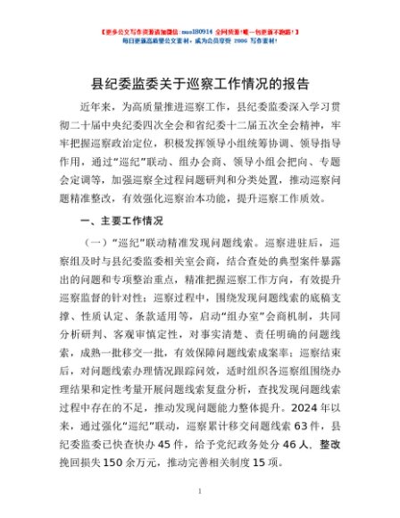 / 县纪委监委关于巡察工作情况的报告