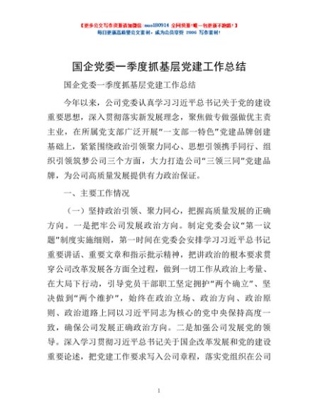 / 国企党委一季度抓基层党建工作总结