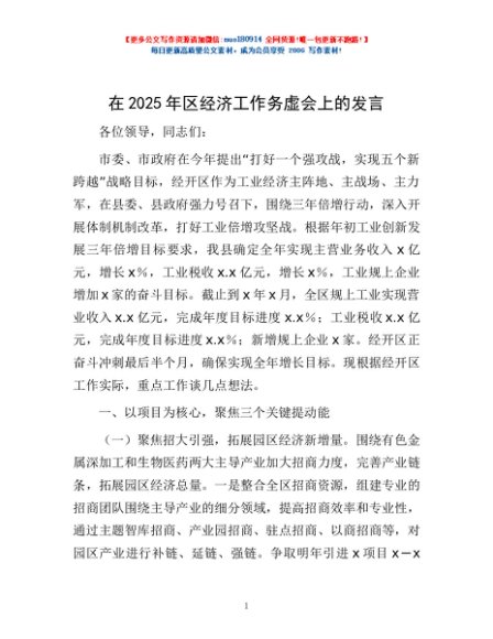 / 在2025年区经济工作务虚会上的发言