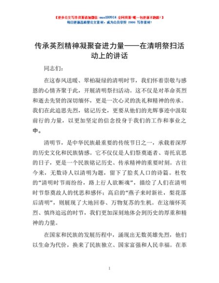 / 传承英烈精神 凝聚奋进力量——在清明祭扫活动上的讲话
