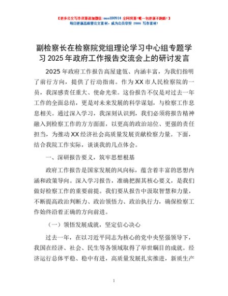 / 副检察长在检察院党组理论学习中心组专题学习2025年政府工作报告交流会上的研讨发言