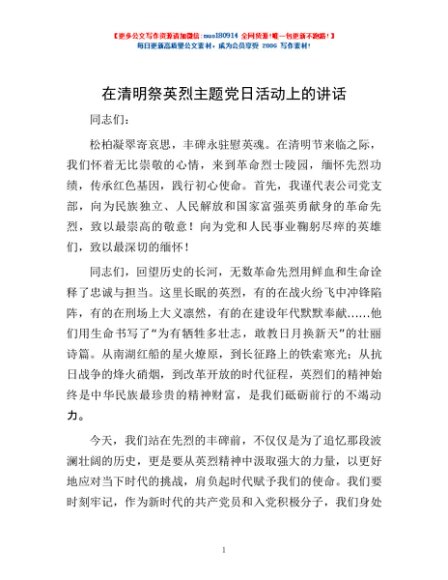 / 在清明祭英烈主题党日活动上的讲话