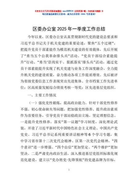 / 区委办公室2025年一季度工作总结