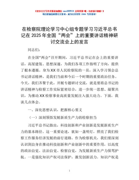 / 在检察院理论学习中心组专题学习习近平总书记在2025年全国“两会”上的重要讲话精神研讨交流会上的发言