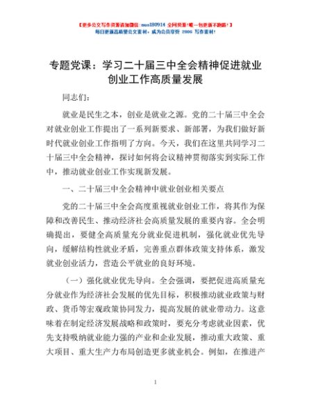 / 专题党课:学习二十届三中全会精神 促进就业创业工作高质量发展