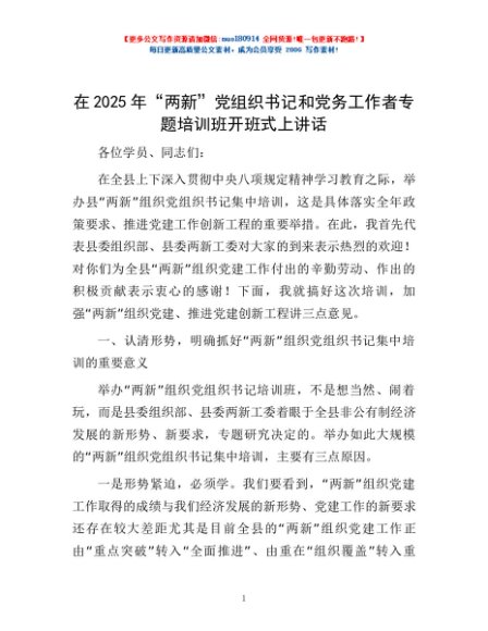 / 在2025年“两新”党组织书记和党务工作者专题培训班开班式上讲话