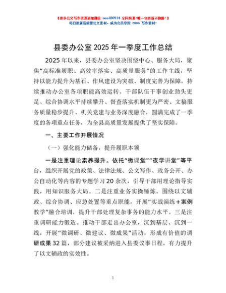 / 县委办公室2025年一季度工作总结