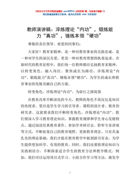 / 教师演讲稿:淬炼理论“内功”,锻炼能力“真功”,锤炼本领“硬功”