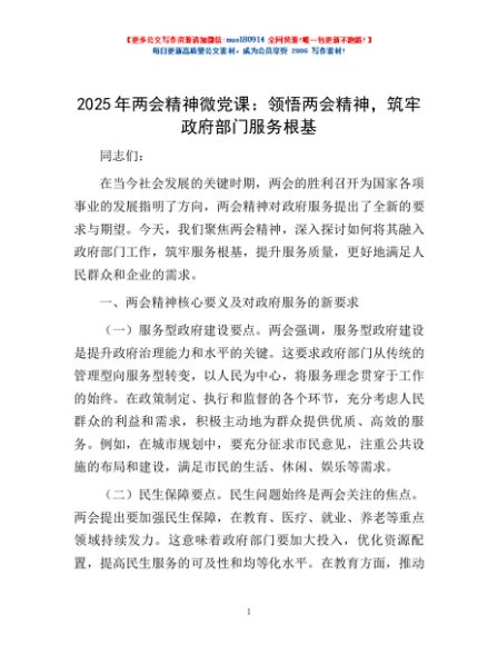 / 2025年两会精神微党课:领悟两会精神,筑牢政府部门服务根基