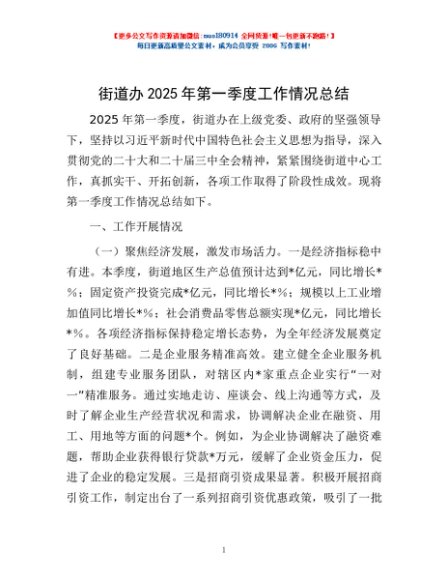 / 街道办2025年第一季度工作情况总结