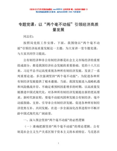 专题党课:以“两个毫不动摇”引领经济高质量发展