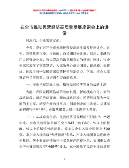 / 在全市推动民营经济高质量发展座谈会上的讲话