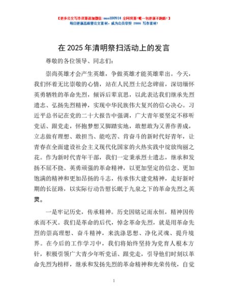 / 在2025年清明祭扫活动上的发言