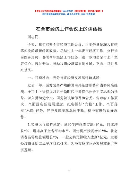 / 在全市经济工作会议上的讲话稿