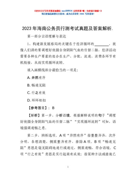 / 2023年海南公务员行测考试真题及答案解析.