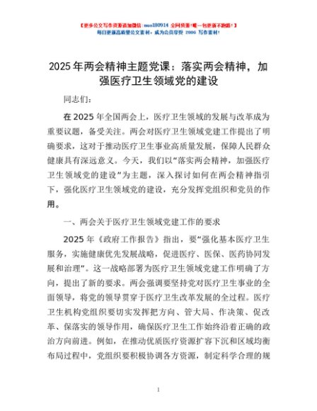 / 2025年两会精神主题党课:落实两会精神,加强医疗卫生领域党的建设