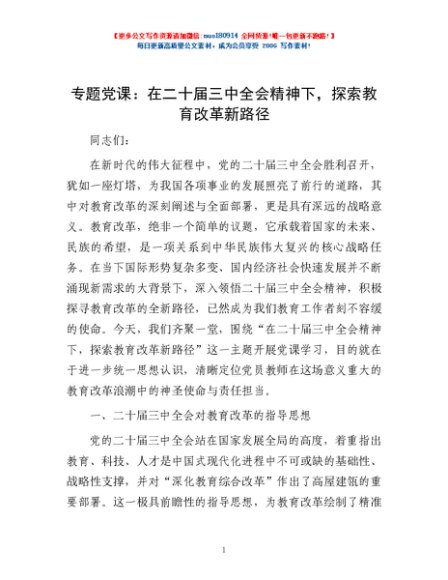 / 专题党课:在二十届三中全会精神下,探索教育改革新路径