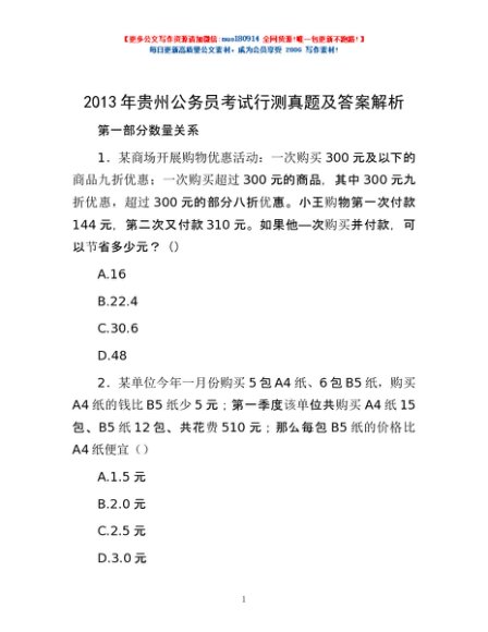 2013年贵州公务员考试行测真题及答案解析