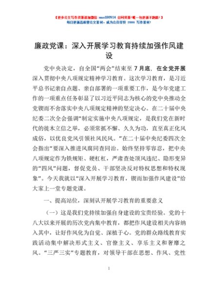 / 廉政党课:深入开展学习教育 持续加强作风建设