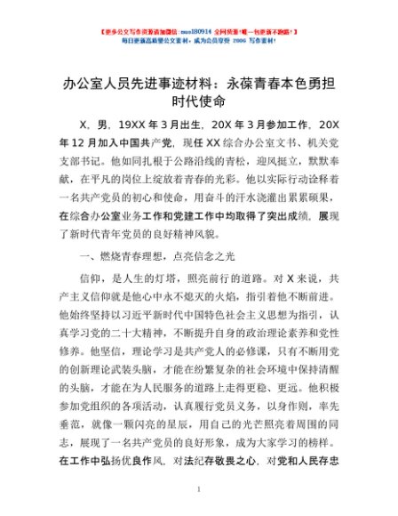 / 办公室人员先进事迹材料:永葆青春本色 勇担时代使命
